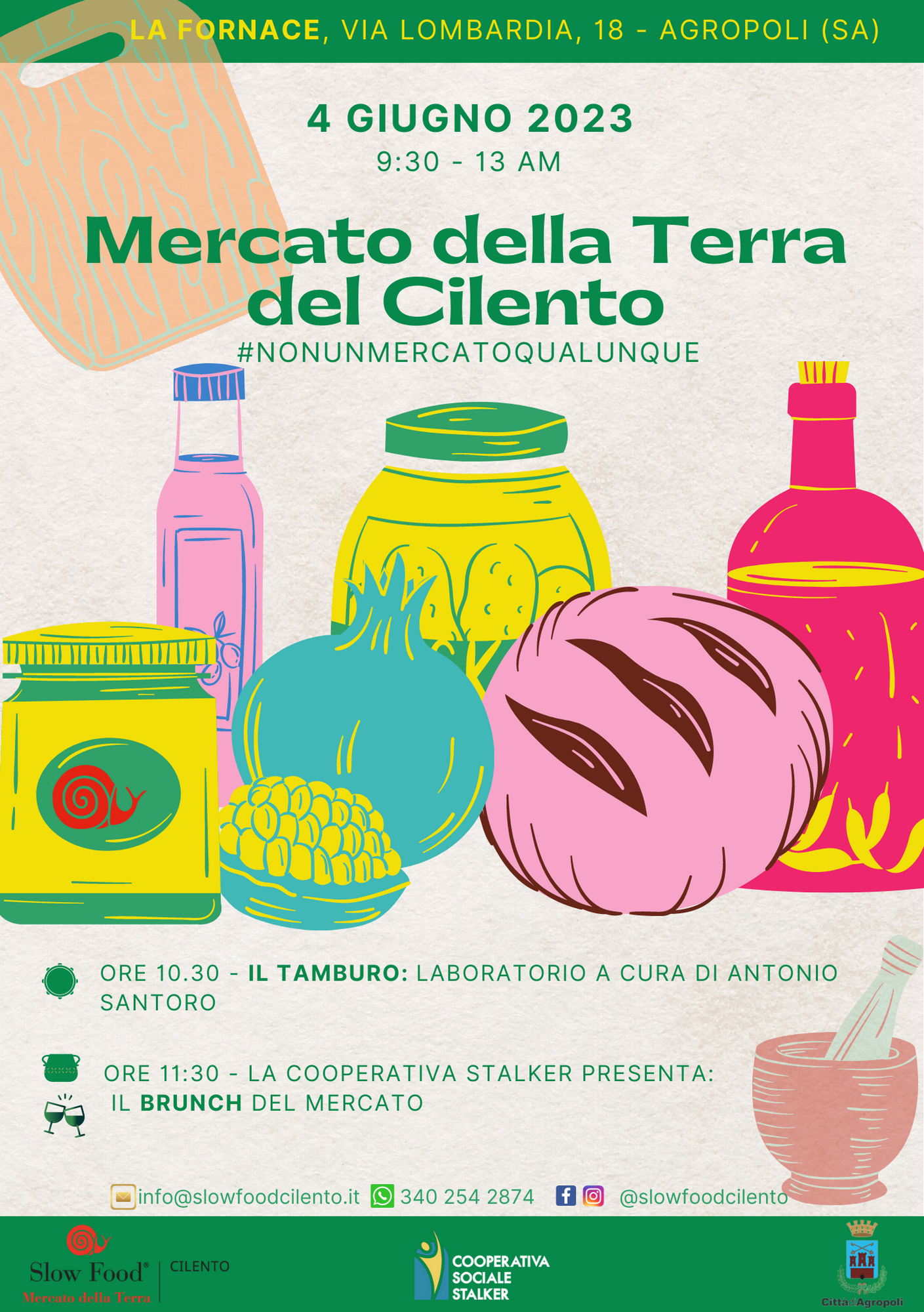 Ebbene sì. Domenica 4 giugno dalle 9:30 alle 13 ritroverete il Mercato della Terra del Cilento ad Agropoli, i gazebo saranno sistemati nello spazio esterno antistante La Fornace. I produttori cilentani vi accoglieranno come sempre con cibo #buonopulitoegiusto.