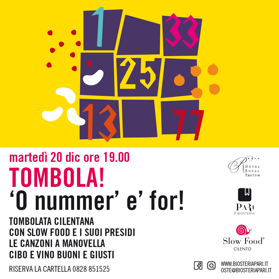 Martedì 20 dicembre presso la Pari#Biosteria festeggiamo insieme il periodo natalizio con la Tombola, premi gustosi e tanto divertimento.